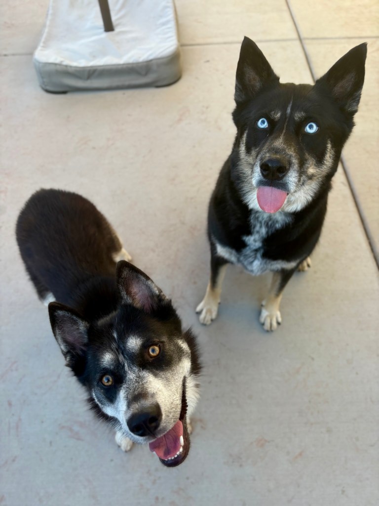 Adopting a dog is a rollercoaster of emotions. Whenever I’ve brought a new dog home, it’s always a mix of joy and dread. I look at the dog and always think “Oh boy, this is going to be interesting.” Of course, the first dog I owned was a Shiba Inu. My retiring service dog is a husky x cattle dog x German shepherd. His apprentice is another well mixed husky mutt. I brought her home this past July. My version of “interesting” may be someone else’s definition of “crazy”. Our household has three dogs and three cats thriving successfully with each other. The secret to success?
